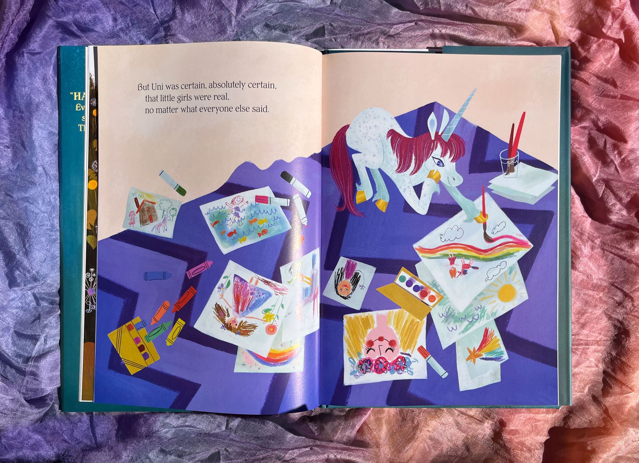 Uni the unicorn is told there’s no such thing as little girls! But no matter what the grown-up unicorns say, Uni believes that little girls are REAL. Somewhere there must be a smart, strong, wonderful, magical little girl waiting to be best friends. In fact, far away (but not too far away), a real little girl believes there is a unicorn waiting for her, too.